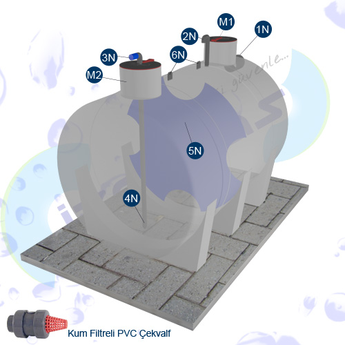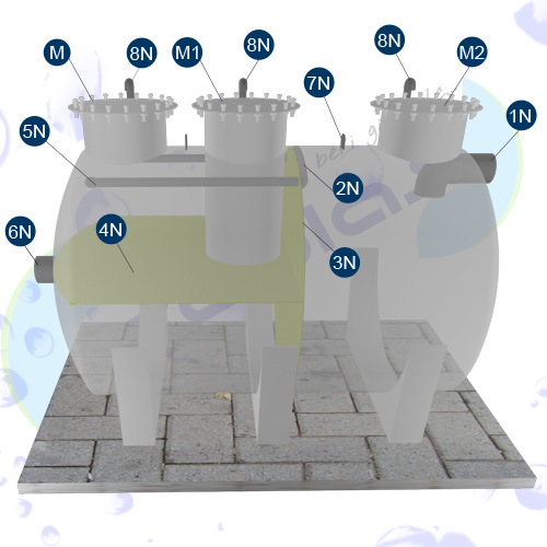- 3N : 1. Hazne ile diğer hazneleri ayıran tamamen kapalı fiberglas ayırıcıdır.